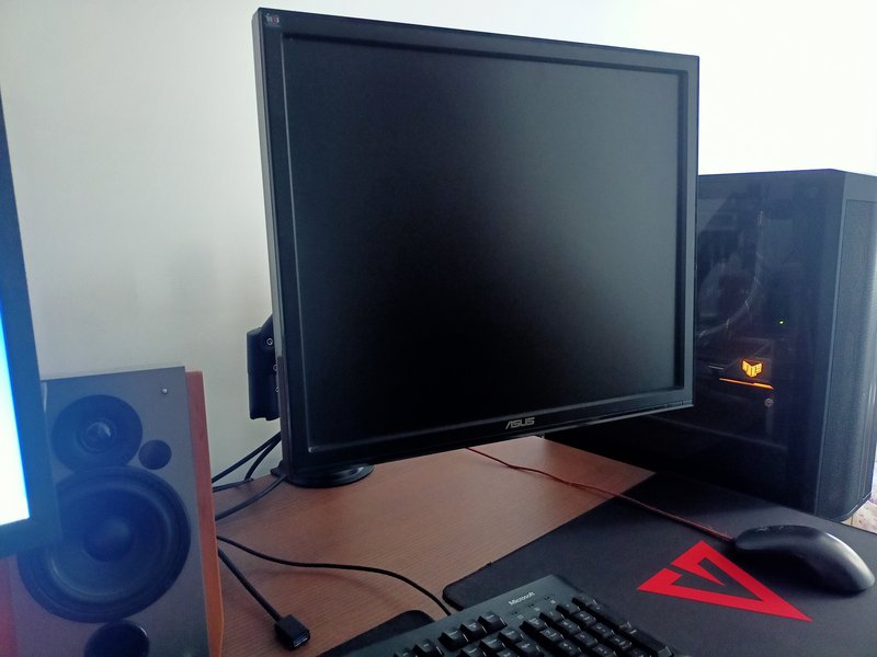 Też będę w coraz bliższej przyszłości kombinował z ramionami. Jak na razie już będzie wisieć zwyklak monitor do pieca i stary lcd led do starszych konsol, ale chodzi jeśli wyjdzie, że na blacie miejsca będzie wystarczająco, to kto wie. Znowu u kumpla pograłem sobie na (i tak budżetowym) monitorze 27 i jak usiadłem przy moim 'arkuszowym' to mi smutno było.