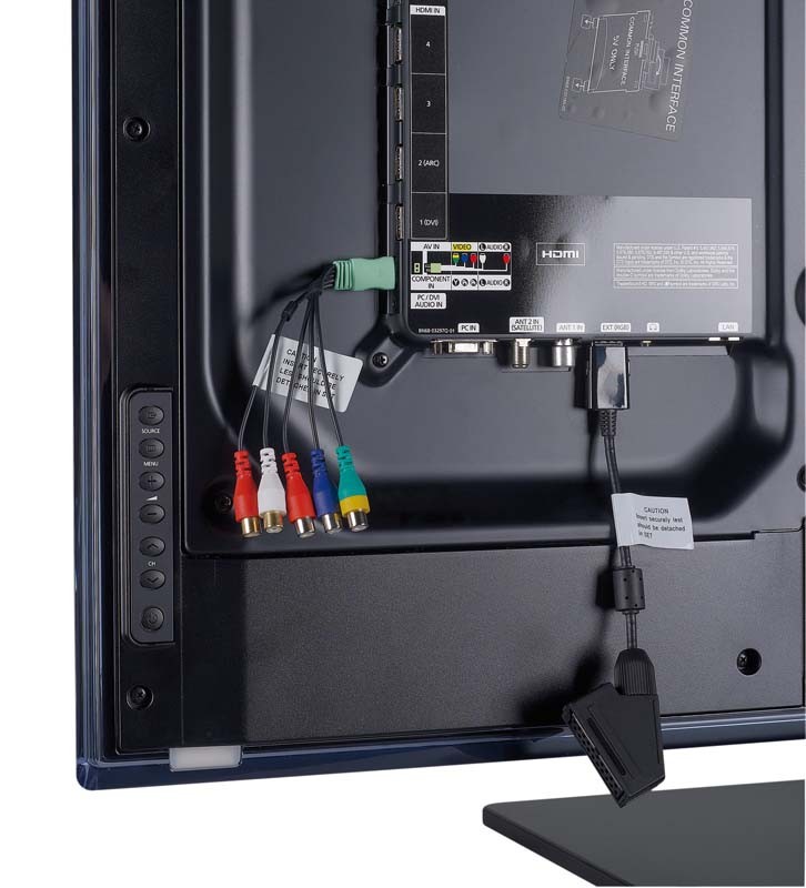 ten telewizor przez to ze jest bardzo szczuply (fajna zaleta) ma zminiaturyzowane stare zlacza i trzeba uzywac tych adapterow